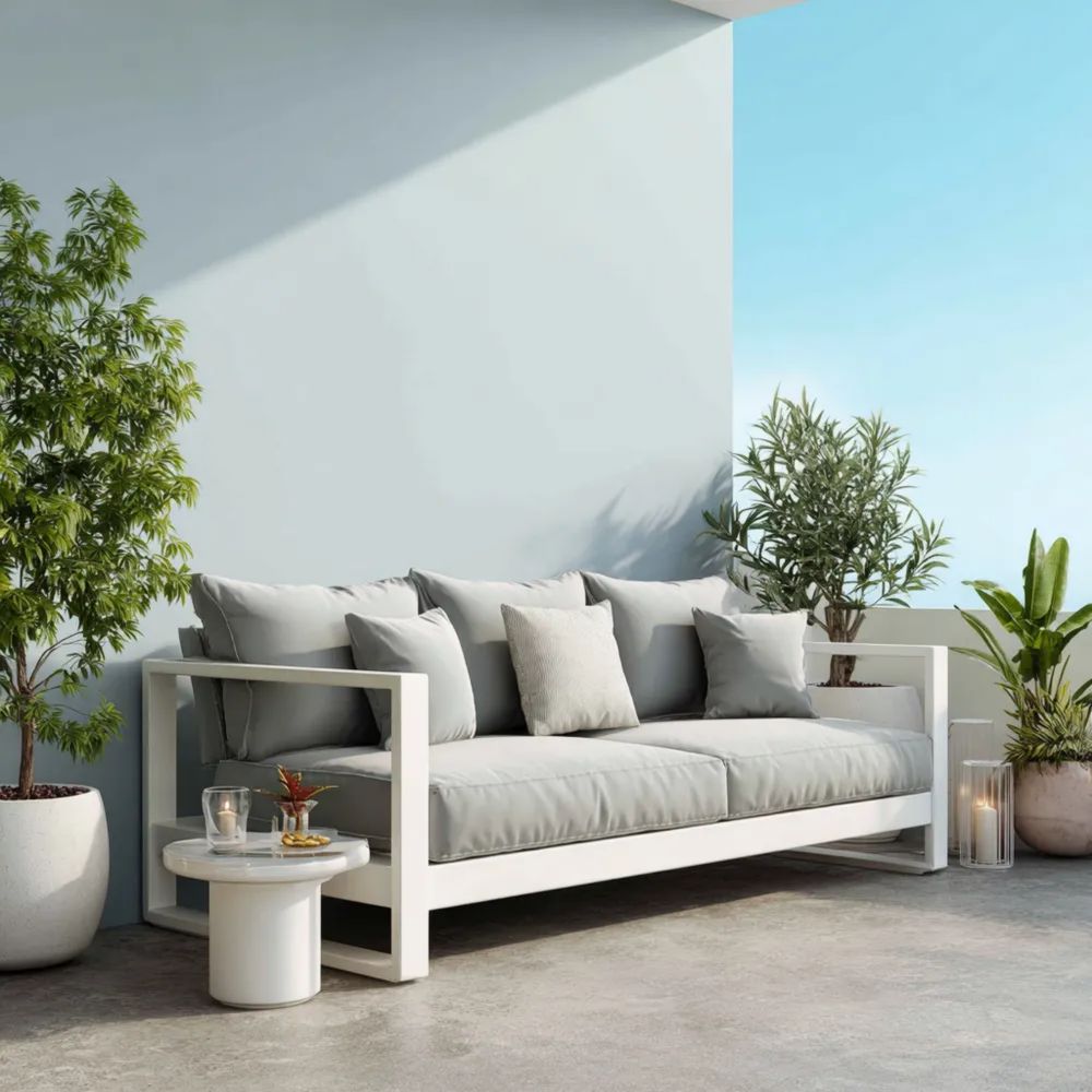 Divano a tre posti da esterno in alluminio 200x85x75 cm - Grigio/Bianco - Design Moderno
