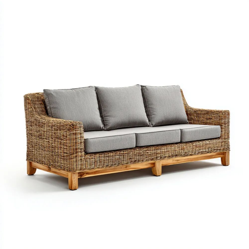 Introduzione al prodottoIl nostro divano a tre posti in rattan è perfetto per arredare il tuo spazio esterno con uno stile rustico e accogliente. Ideale per giardini, terrazze o verande.