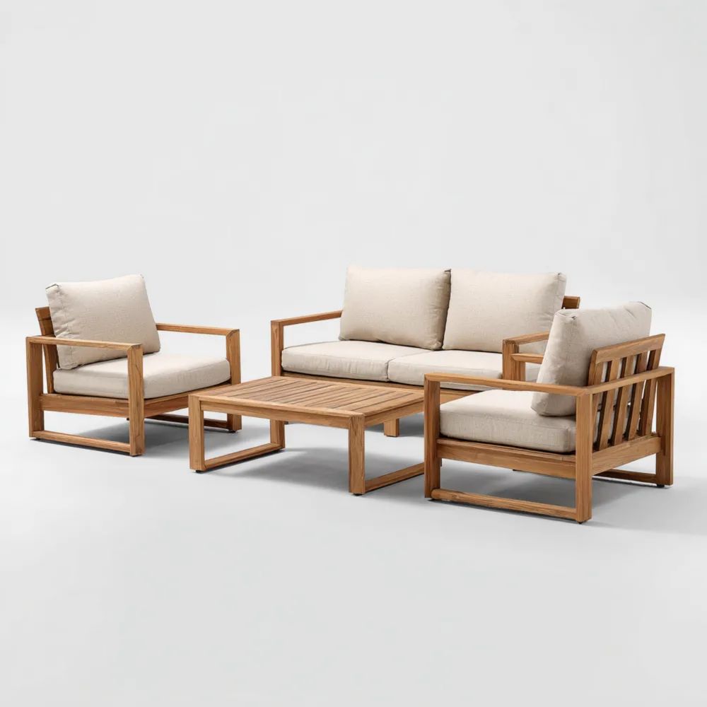 Materiale e lavorazioneIl set è realizzato in legno di alta qualità con cuscini in tessuto Beige. La cura nei dettagli garantisce durata e resistenza agli agenti atmosferici.